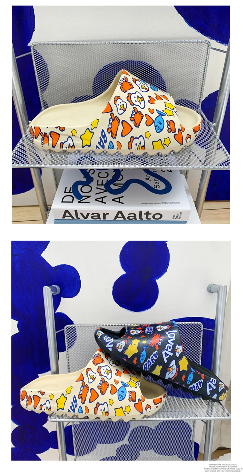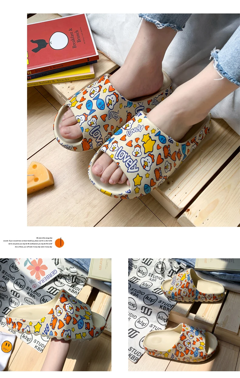Шлепанцы унисекс с открытым носом, мягкие Нескользящие сандалии на платформе, пляжные шлепанцы, симпатичная мультяшная домашняя обувь для женщин