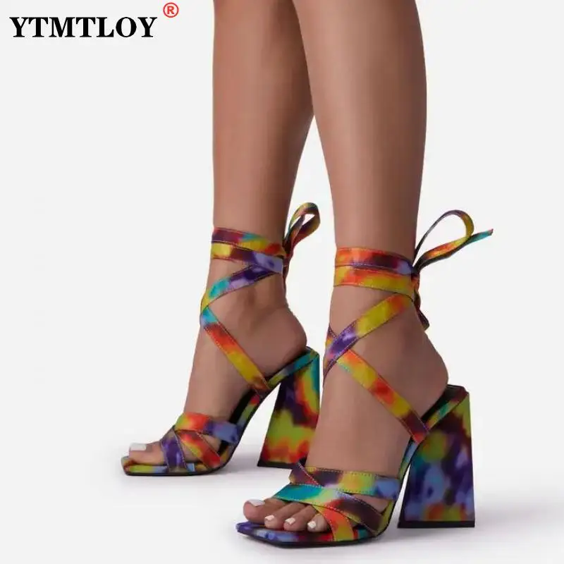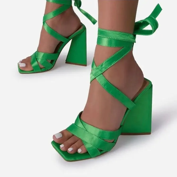 Туфли женские на высоком каблуке, римские сандалии с открытым носко...
