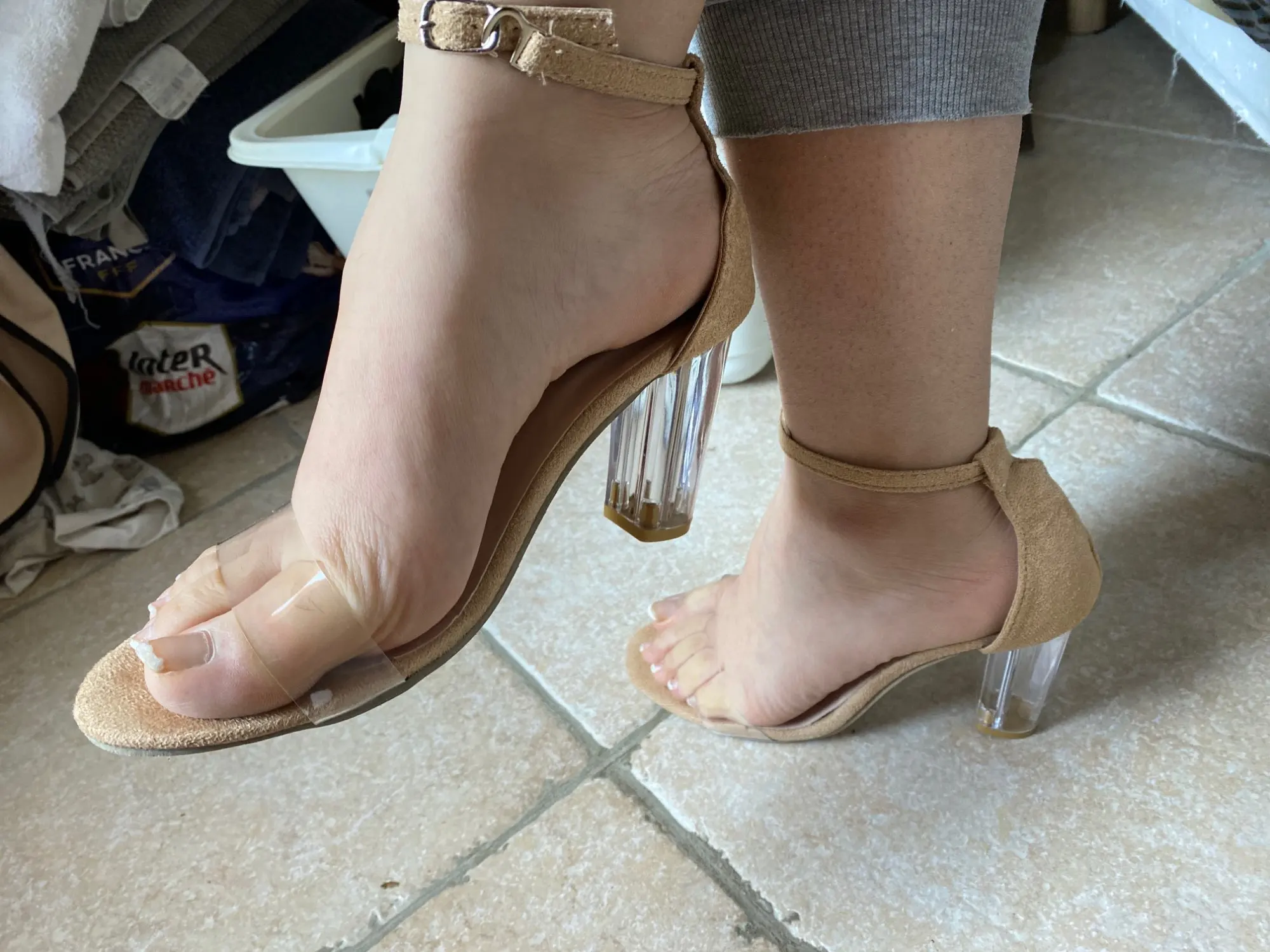 Босоножки женские на прозрачном каблуке, черные, бежевые, универсал...