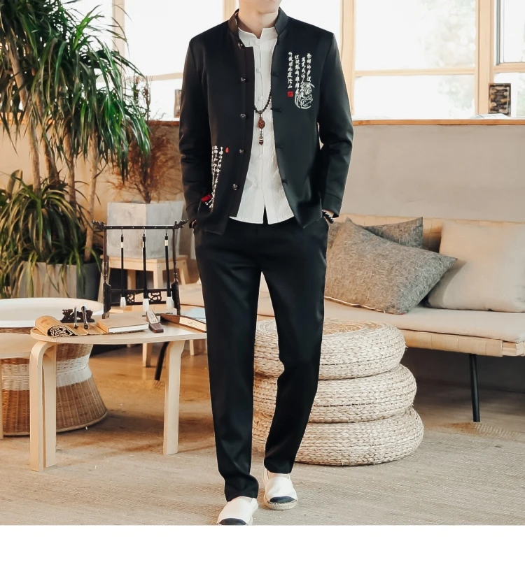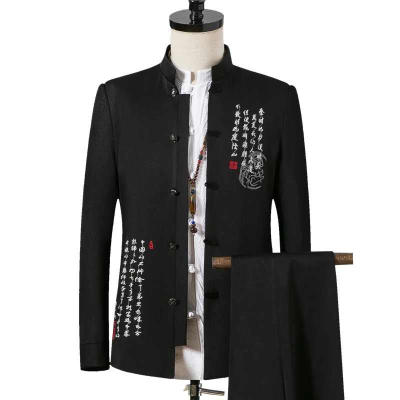 Костюм из 2 предметов, пальто и брюки, модный мужской повседневный бутиковый костюм с воротником-стойкой, льняное платье в китайском стиле, блейзеры, куртка и брюки, 2022