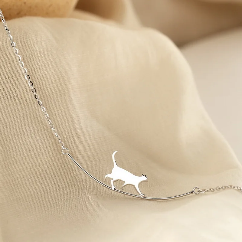 Изогнутое ожерелье с котом из серебра 925 пробы, простая индивидуал...