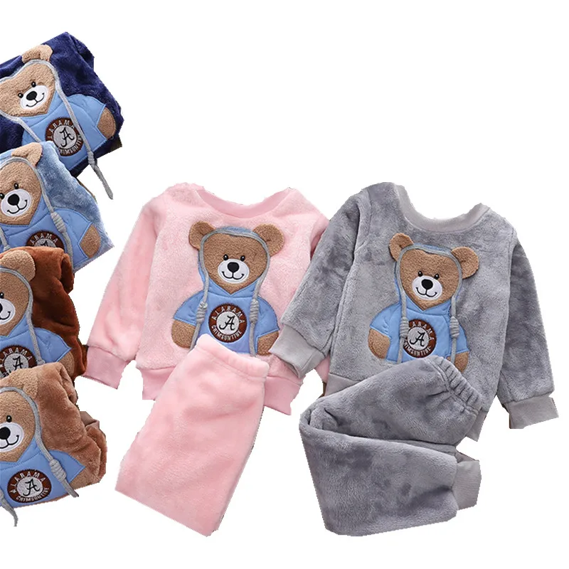 Фланелевый теплый комплект одежды для мальчиков и девочек 1-6 лет