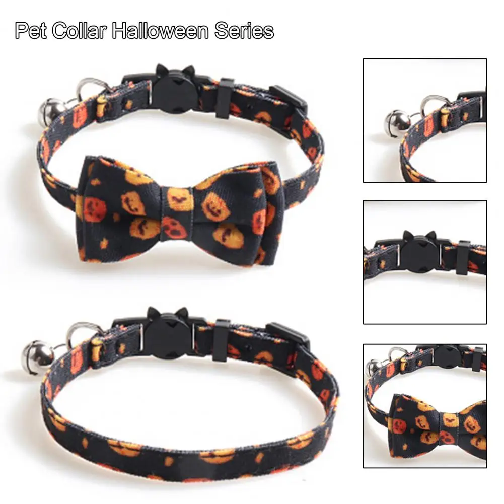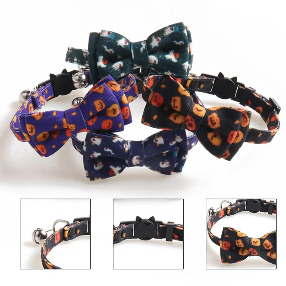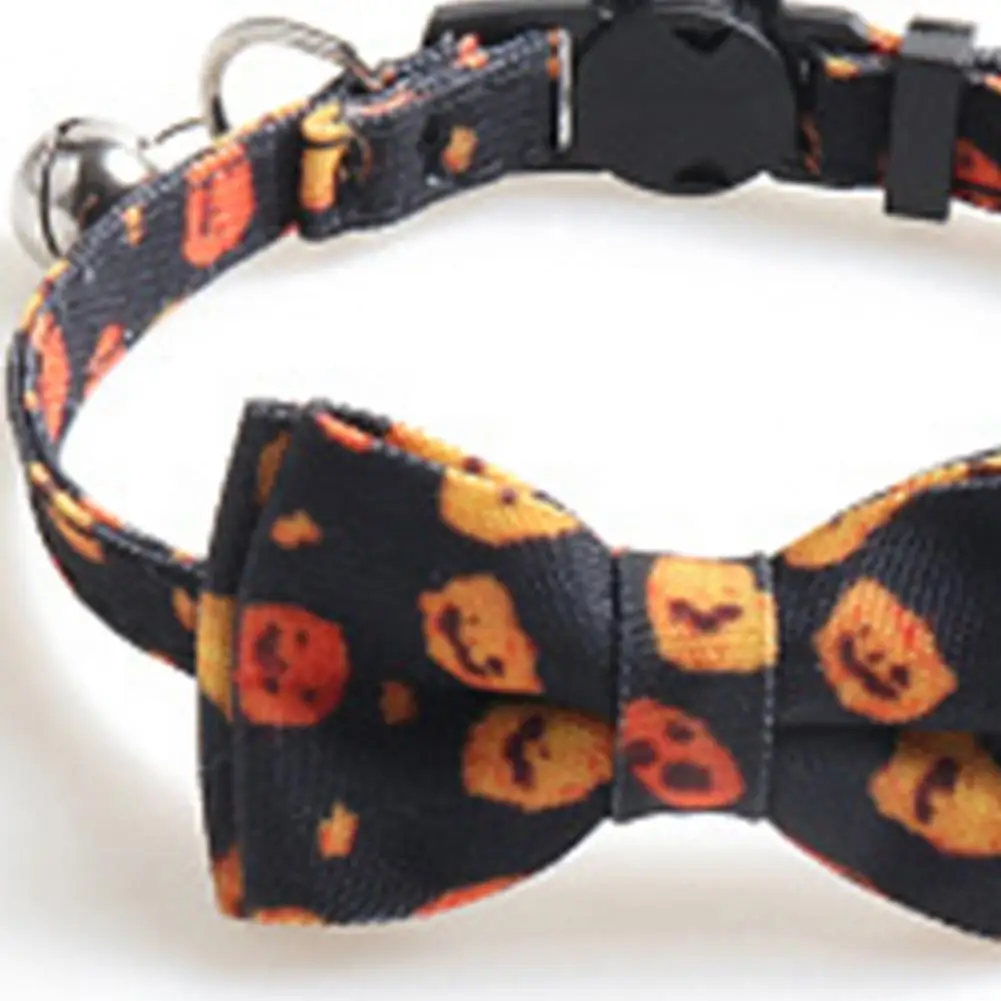 Красивый ошейник для котенка с рисунком призрака тыквы декоративное регулируемое тканевое ожерелье с бантом для домашних животных кошек с колокольчиком для Хэллоуина