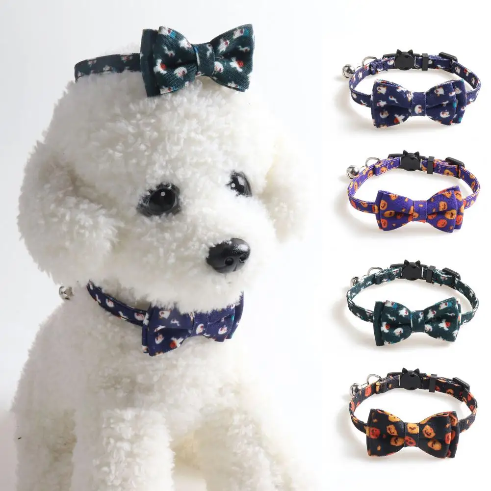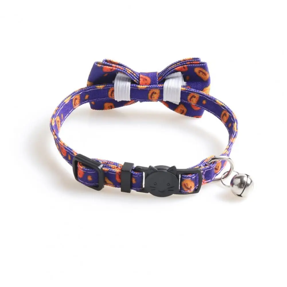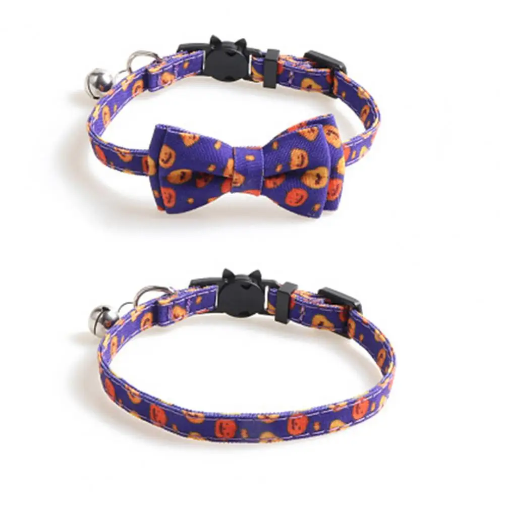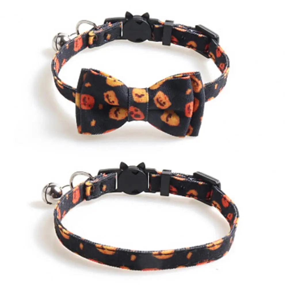 Красивый ошейник для котенка с рисунком призрака тыквы декоративное регулируемое тканевое ожерелье с бантом для домашних животных кошек с колокольчиком для Хэллоуина