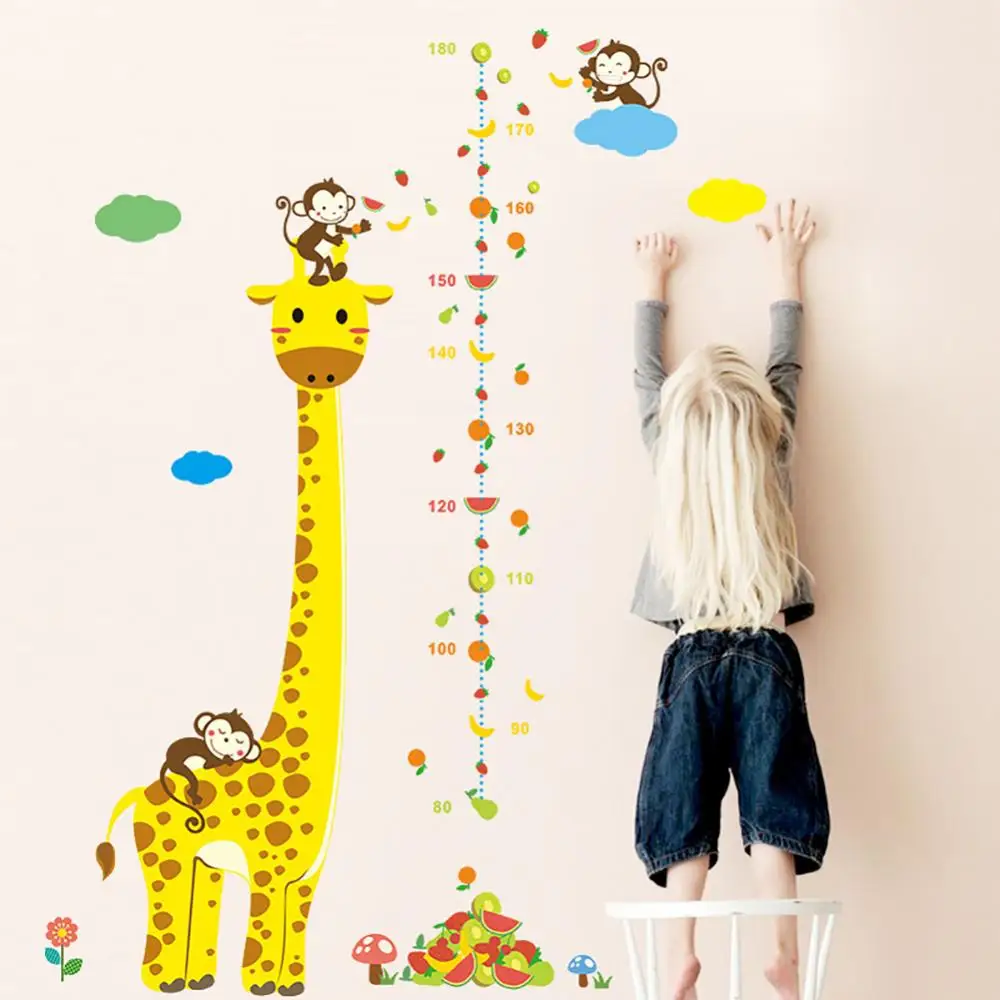 Мультяшный жираф, обезьяна, Детская Таблица роста, настенная наклейка, Детская Наклейка, датчик, детская комната, наклейка