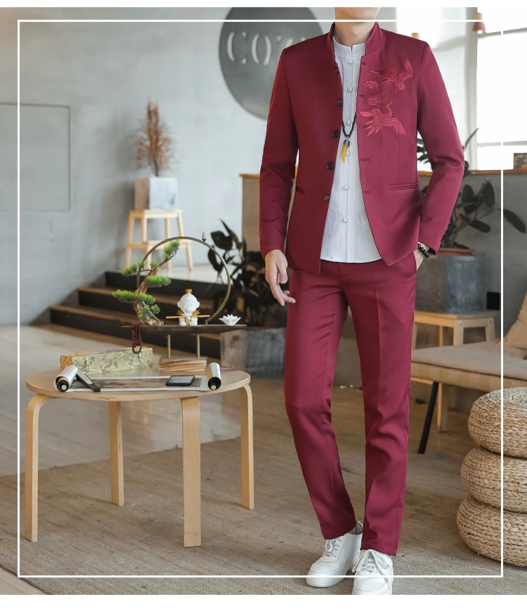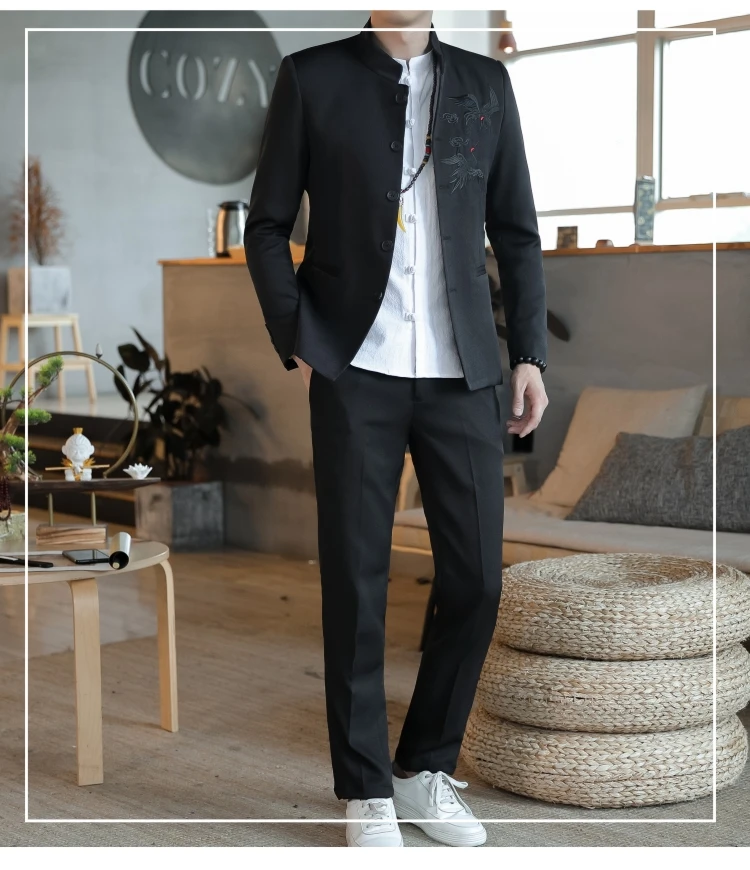 Комплект из 2 предметов, пиджак и брюки, модное мужское Повседневное платье из льна в китайском стиле с воротником-стойкой, блейзеры, куртка и брюки, 2022