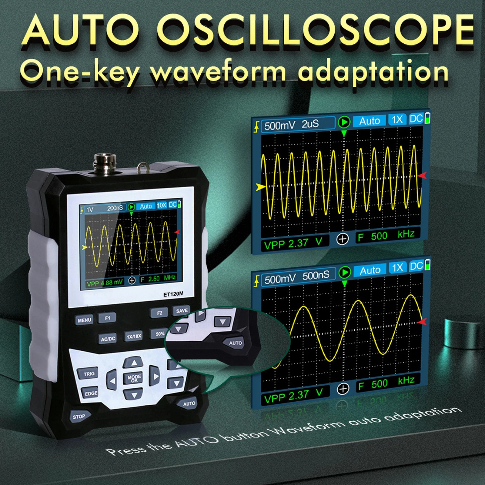 Цифровой осциллограф ET120M, аналоговая полоса пропускания 120 МГц, частота дискретизации 500 мксс, ЖК-экран с подсветкой, измерительный прибор