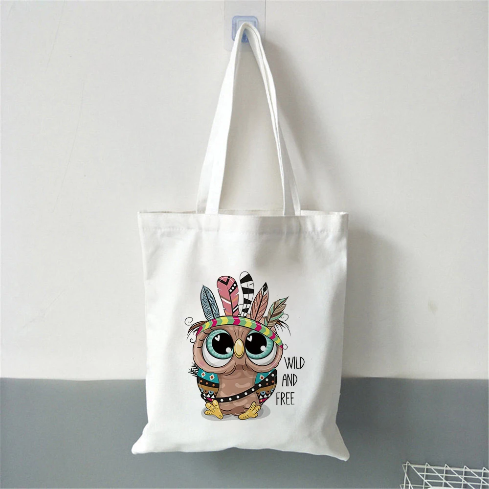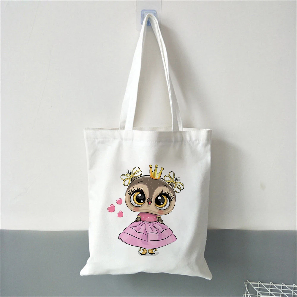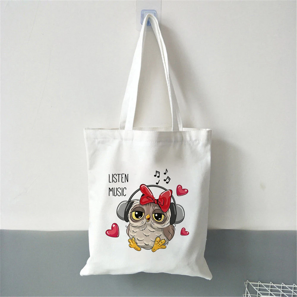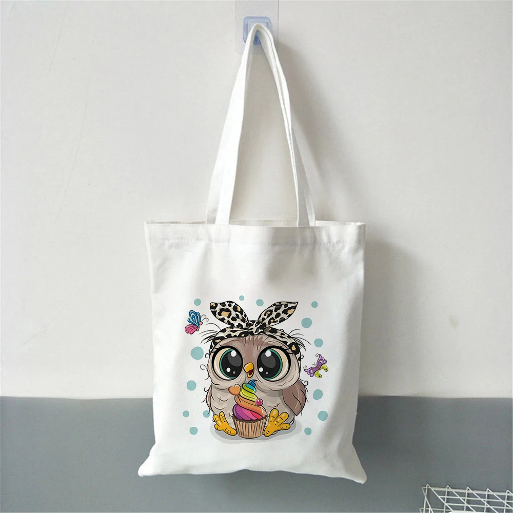 Kawaii Eule Женская холщовая модная сумка через плечо с совой Студенческая женская сумка с цветами Корейская вместительная многоразовая сумка для покупок