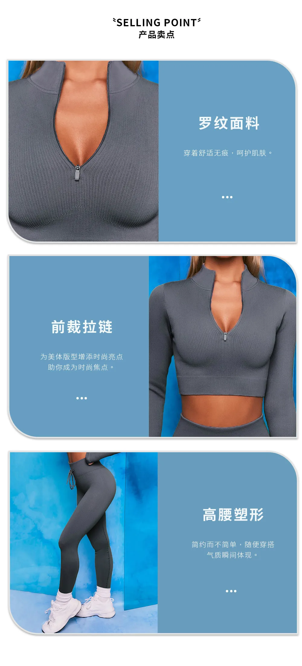 Бесшовный комплект для йоги, Женская короткая рубашка на молнии с д...