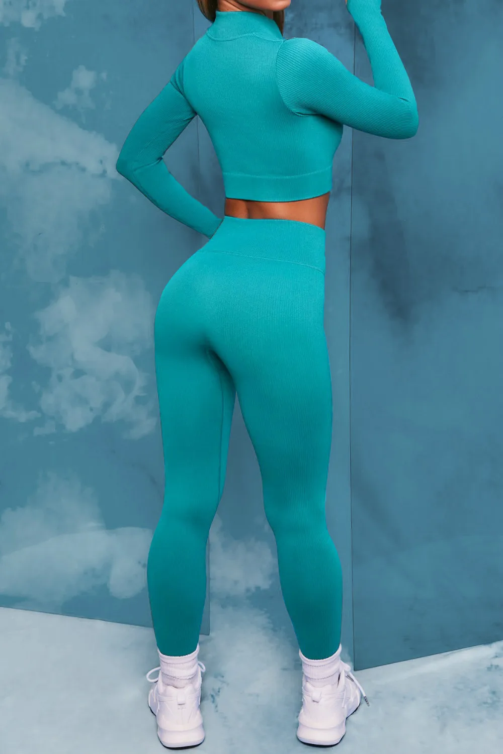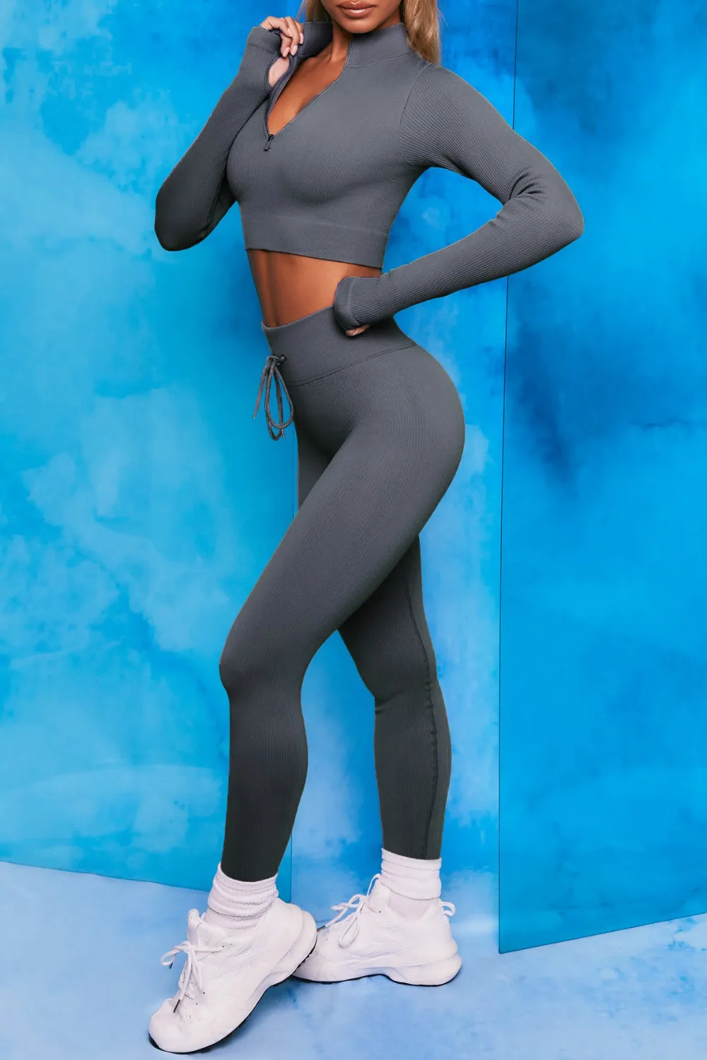 Комплект спортивный женский бесшовный, на молнии, с высокой талией