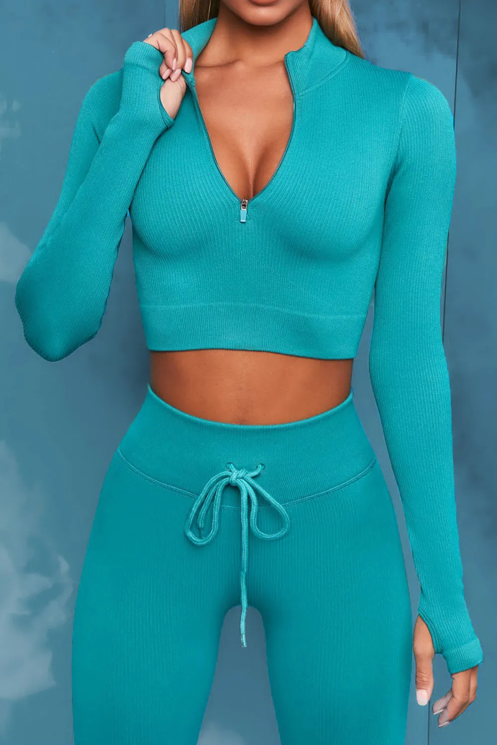 Спортивный комплект для тренировок ATHVOTAR, кроп-топ на молнии со ...