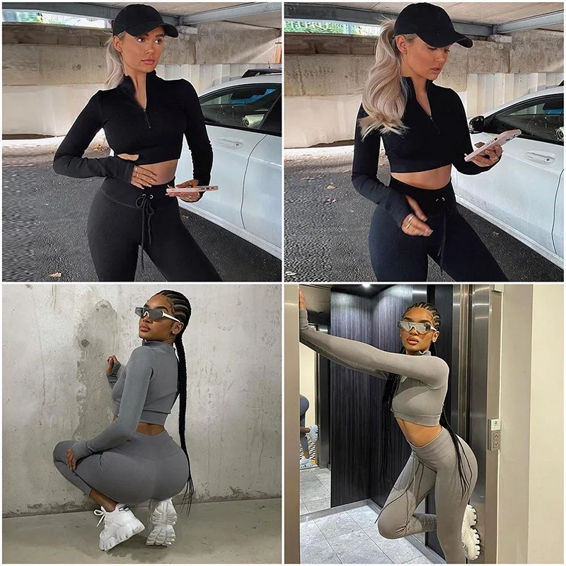 Бесшовные спортивные рубашки, женские свитшоты на молнии из 2 предм...