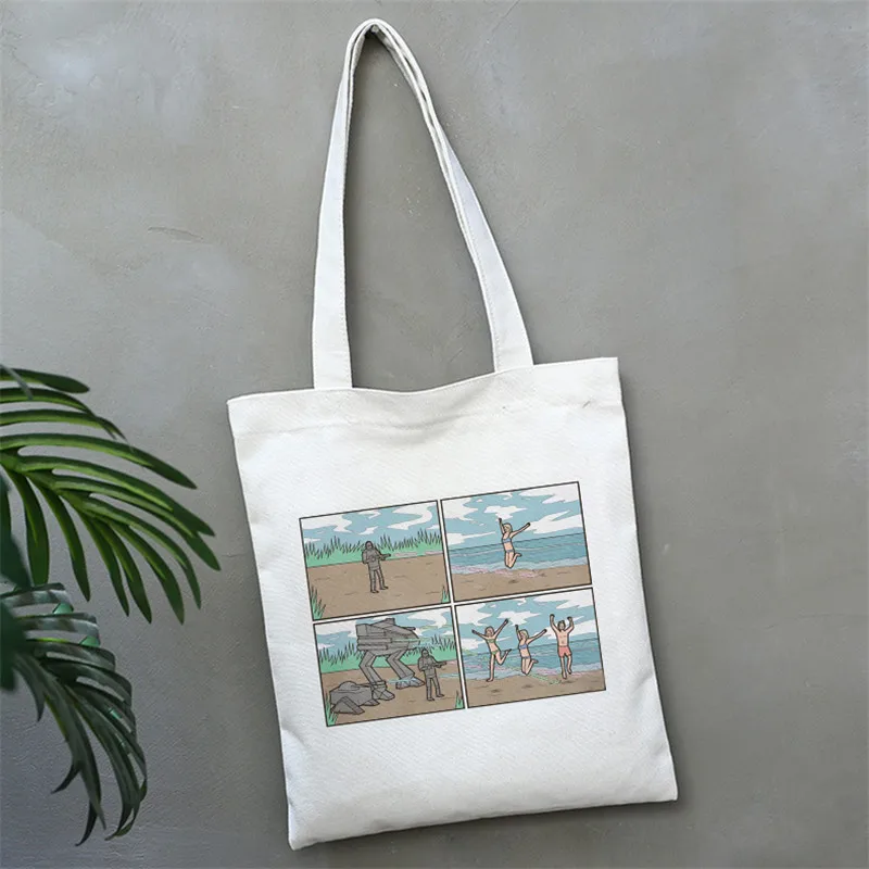 Повседневная Холщовая Сумка с забавным принтом, вместительная дамск...