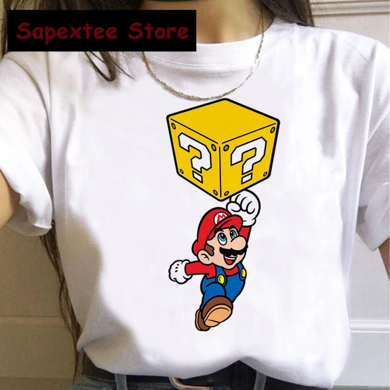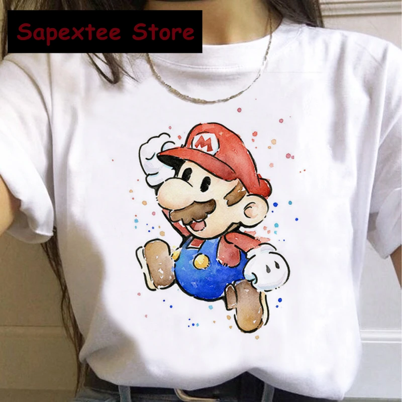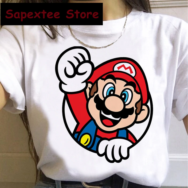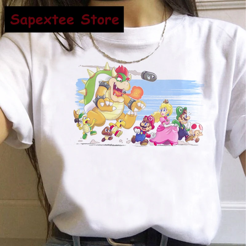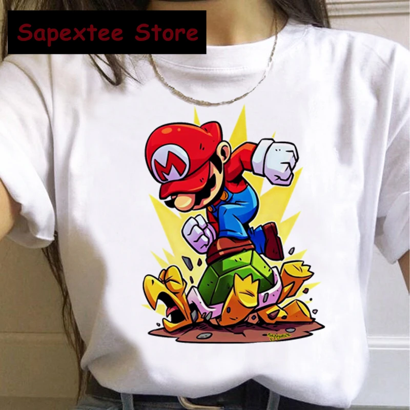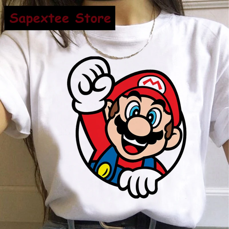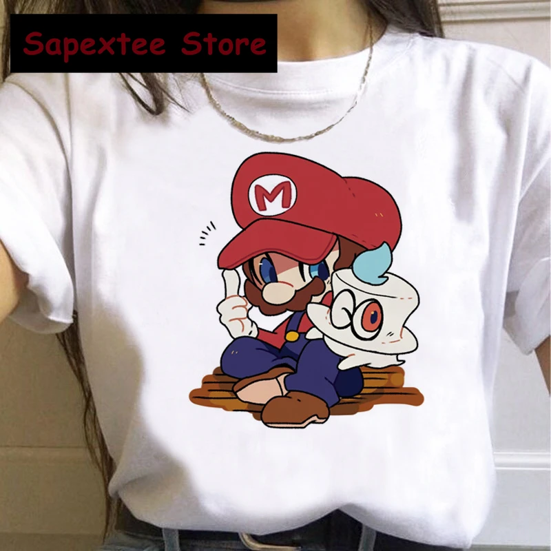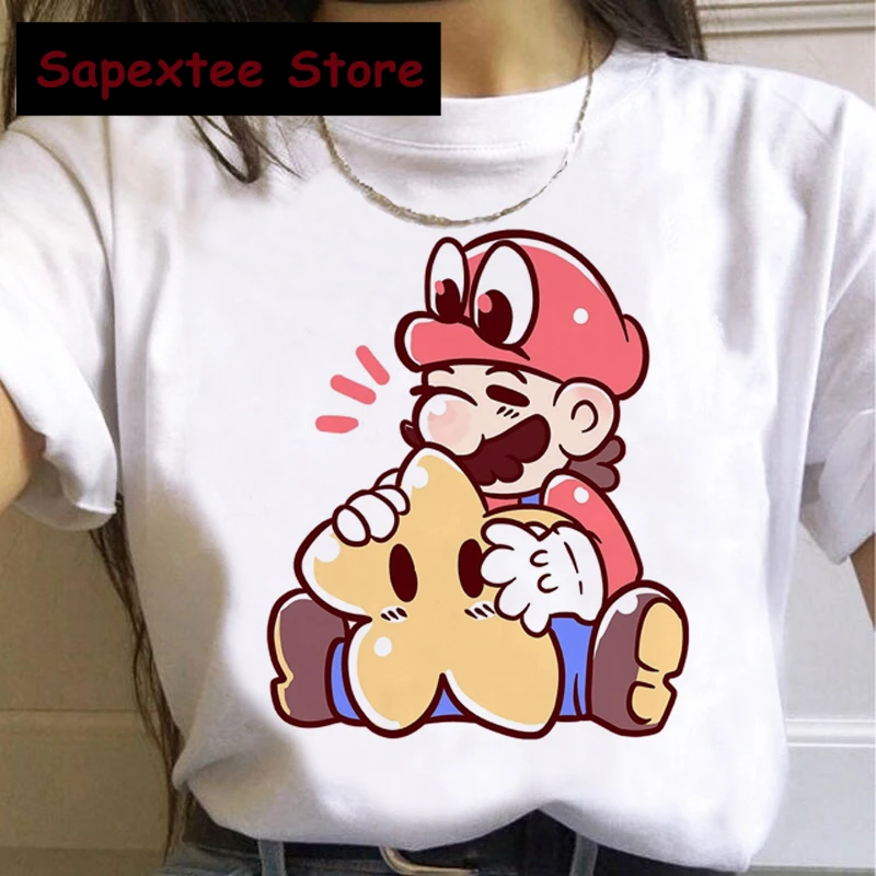 Лидер продаж, футболка в стиле японского аниме Супер Марио, женские футболки в стиле каваи Марио, забавные летние топы в стиле Харадзюку, женская футболка унисекс с мультипликационным рисунком