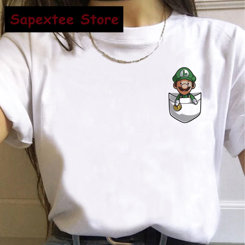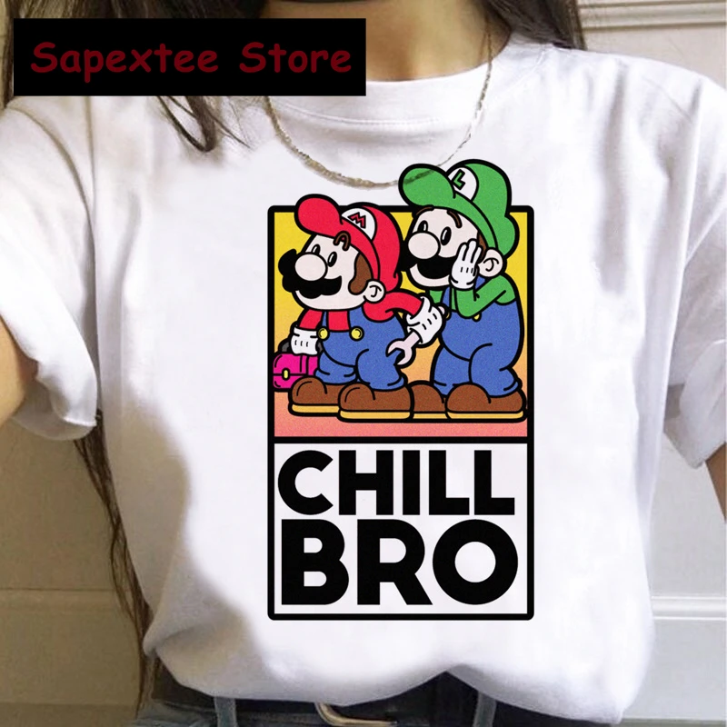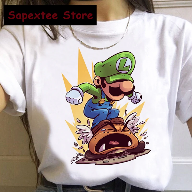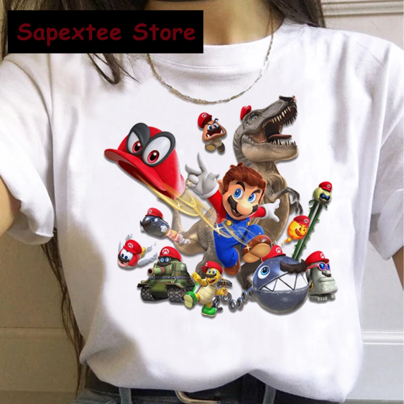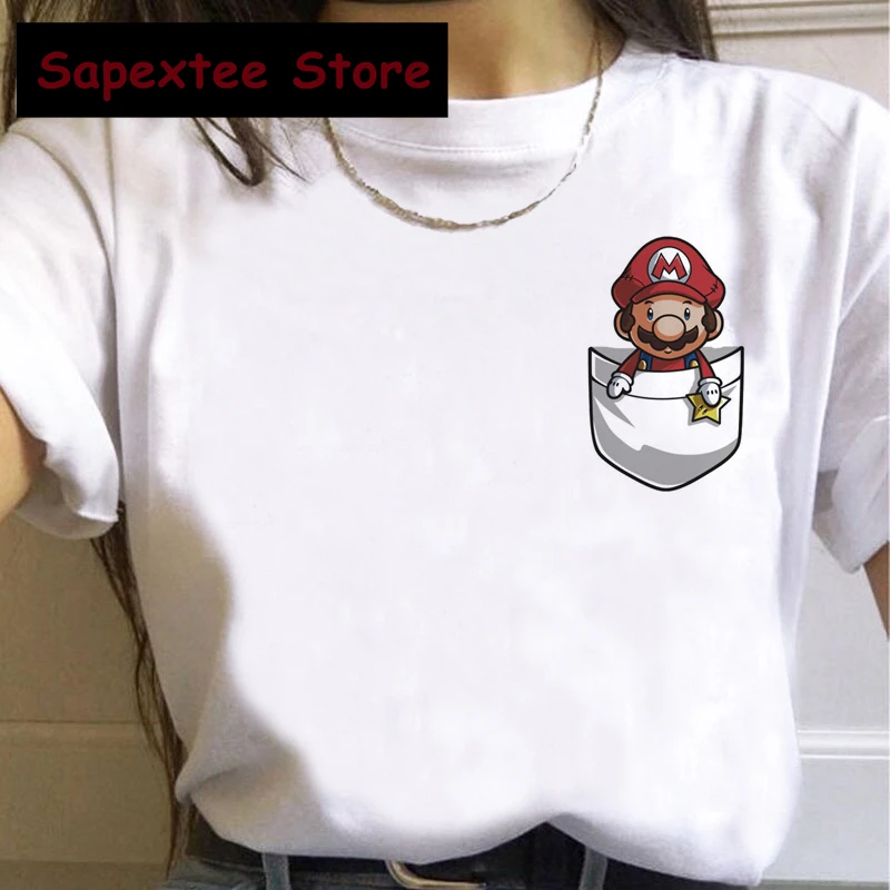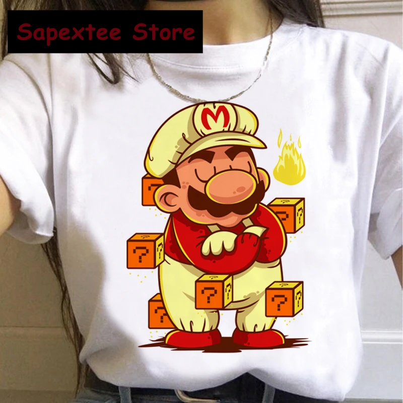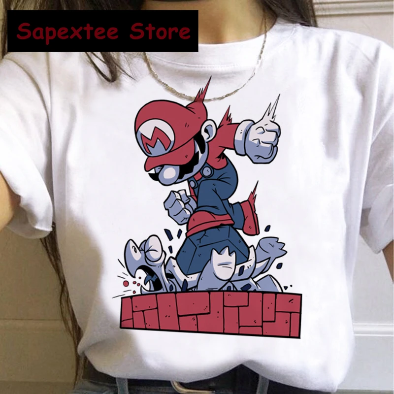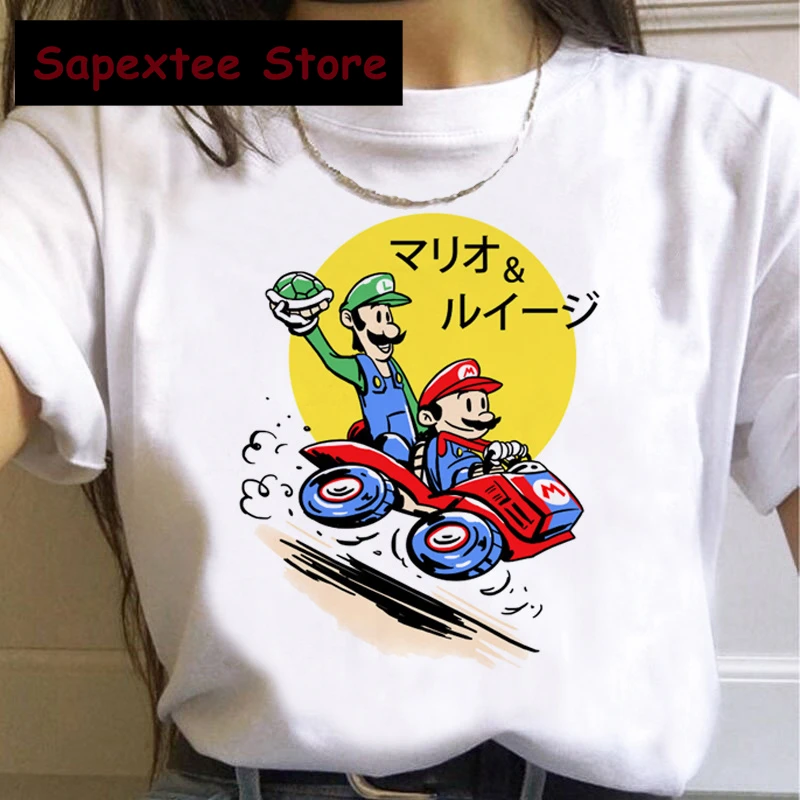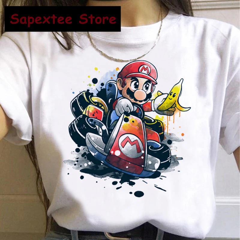 Лидер продаж, футболка в стиле японского аниме Супер Марио, женские футболки в стиле каваи Марио, забавные летние топы в стиле Харадзюку, женская футболка унисекс с мультипликационным рисунком