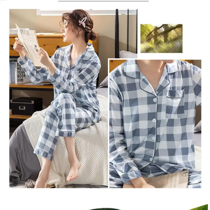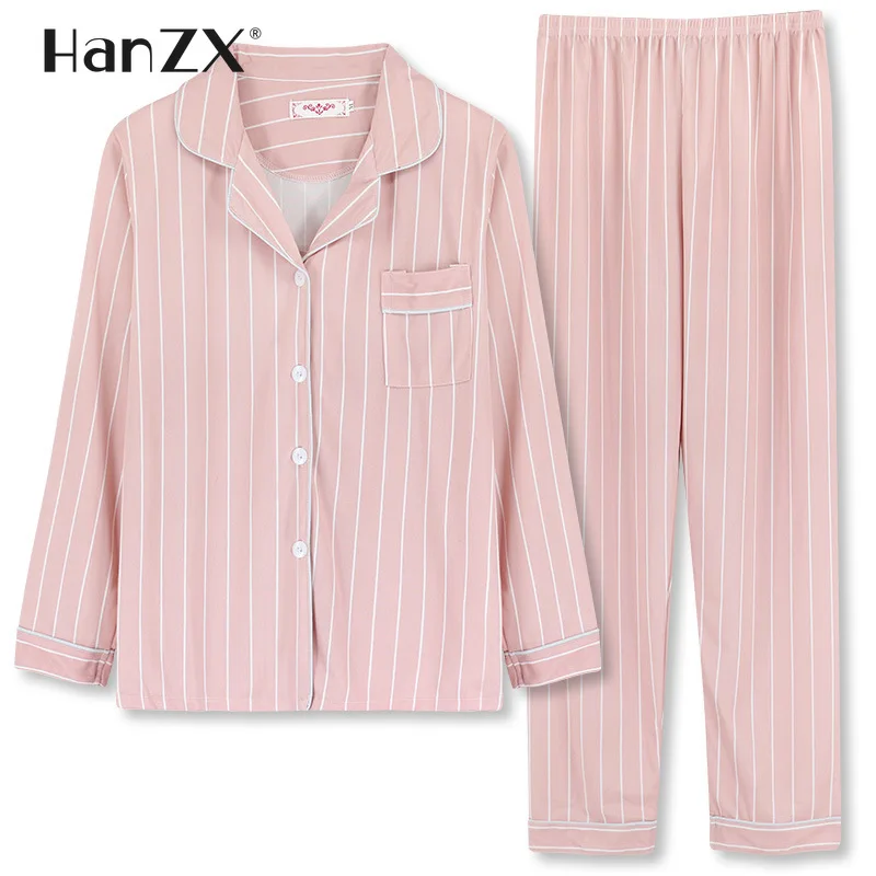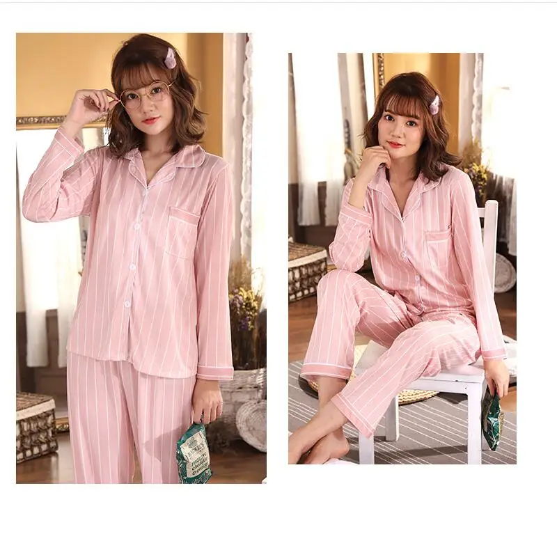 Женский пижамный комплект, пижама с длинными рукавами, Осенний хлоп...