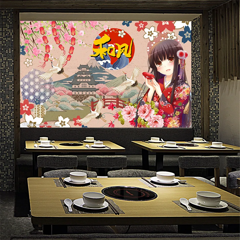 Ручная роспись Япония Знаменитые Достопримечательности настенная бумага 3D кимоно красота японская кухня суши Ресторан промышленный Декор настенная бумага