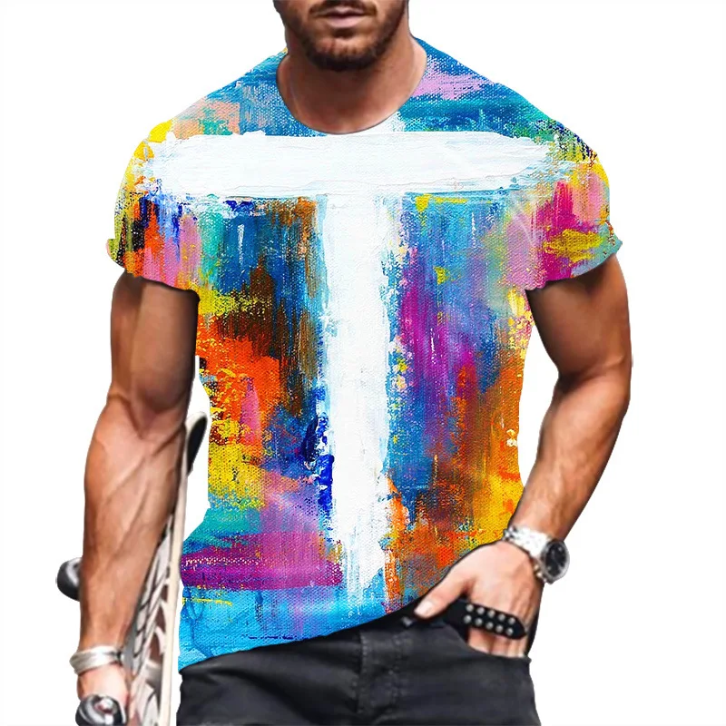 Футболка мужская оверсайз с коротким рукавом, модный топ в стиле ретро, с 3d-цифровой печатью, с круглым вырезом, лето 2021