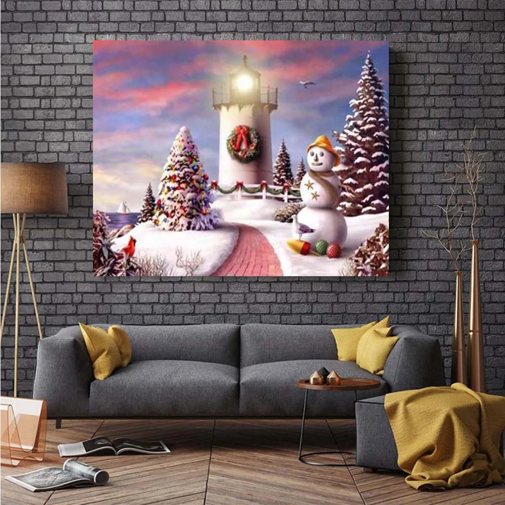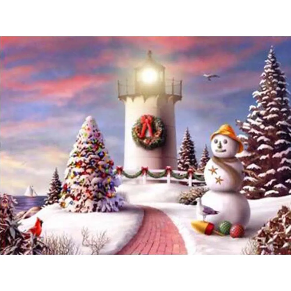 Зимняя живописная алмазная живопись Зимний Рождественский Снеговик пейзаж Алмазная Вышивка Полный Круглый зимний пейзаж алмазная живопись
