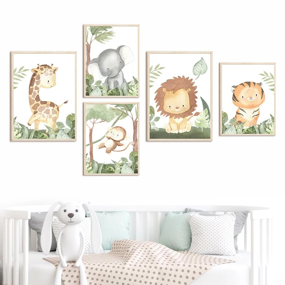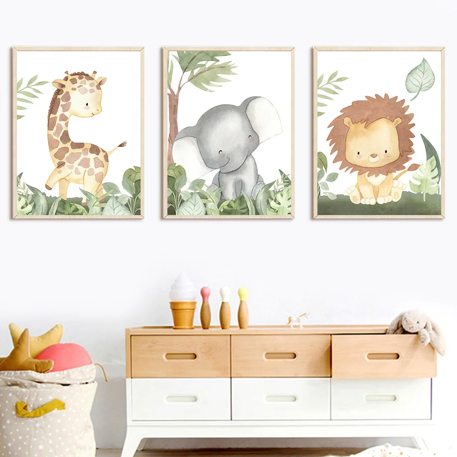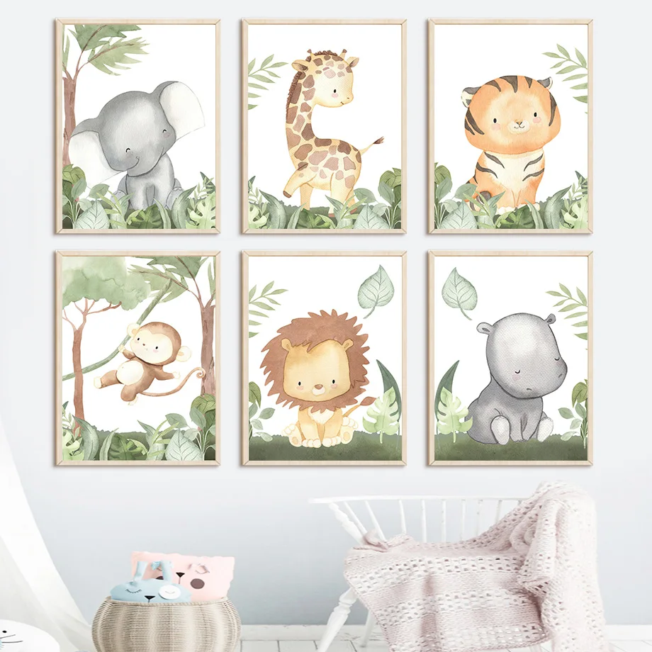 Плакаты и принты для детской комнаты, Лев, жираф, тигр, слон, носор...