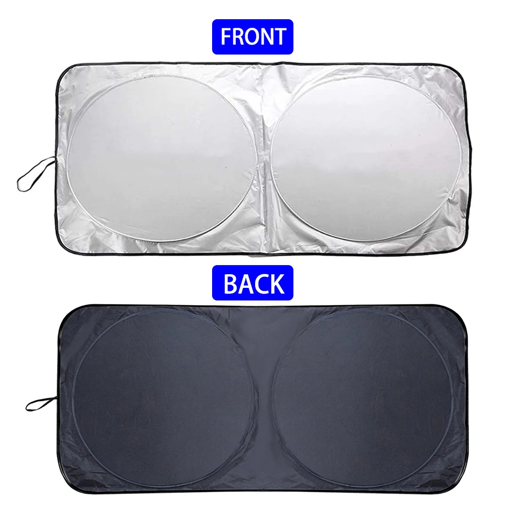 Название продукта: солнцезащитный козырек для автомобиляПодходит для: переднего и заднего ветрового стеклаМатериал: светоотражающий и прочный с складной металлической рамкойЦвет: черный + серебристый