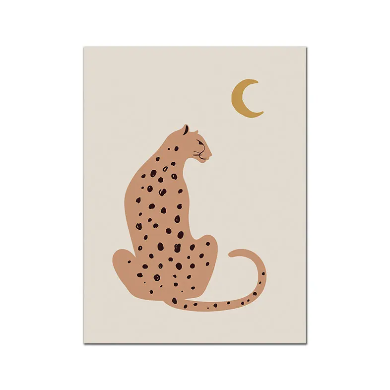Постер в скандинавском стиле, холст в стиле бохо, животные, леопард, оранжевый тигр, луна, звезды, современная живопись, Настенная картина для гостиной, домашний декор