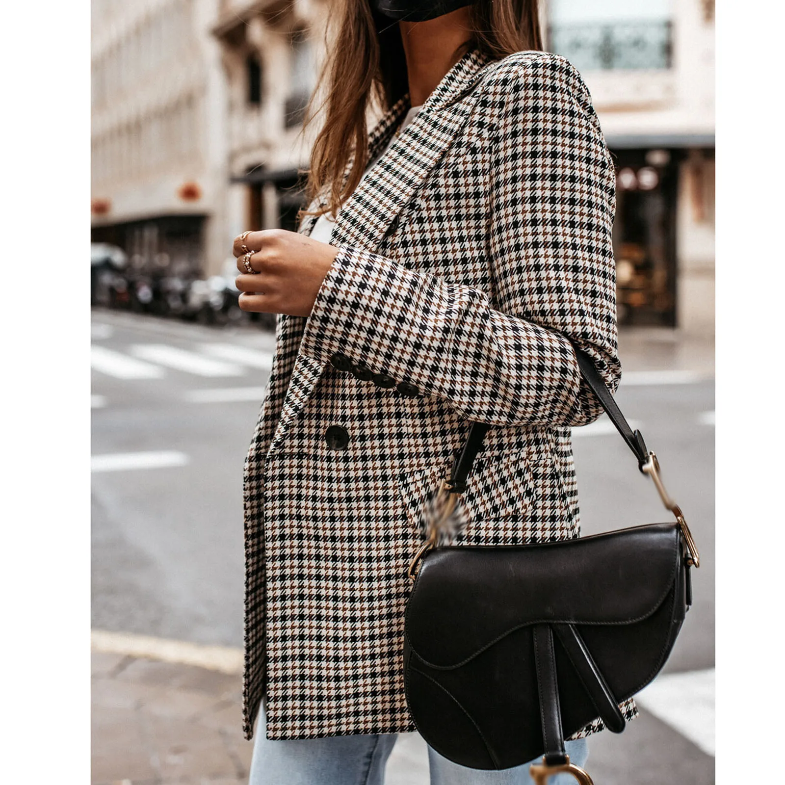 Женский винтажный твидовый блейзер в клетку, приталенный пиджак для офиса, весна-осень 2021