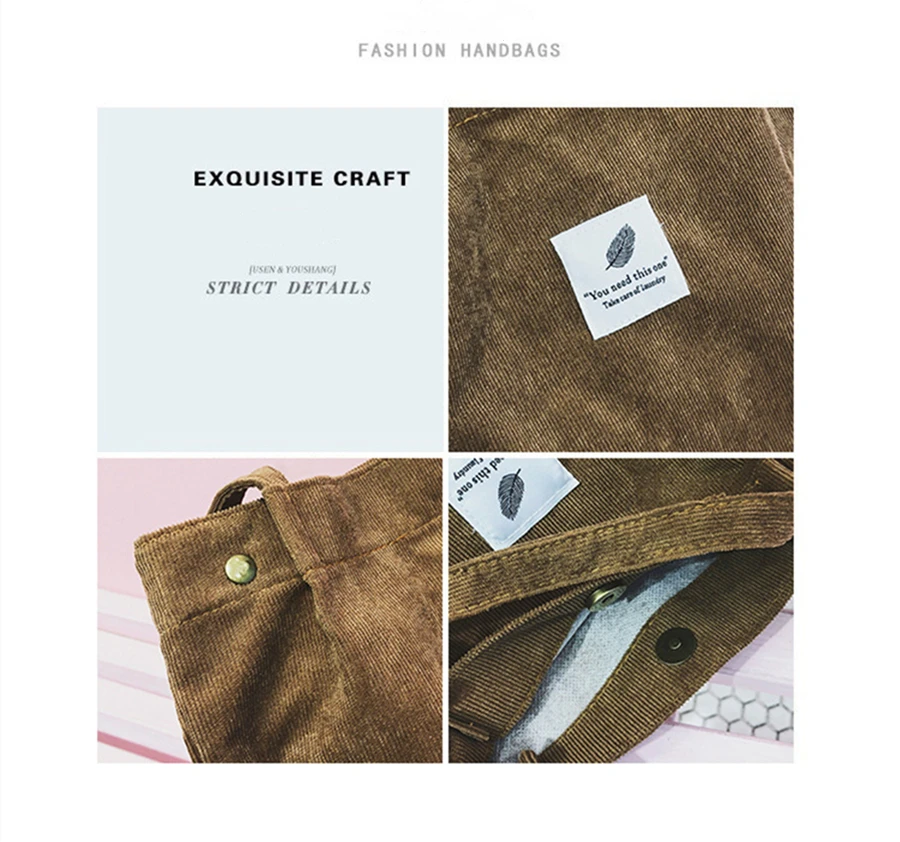 Сумка через плечо для женщин, холщовая сумочка из рубчатого вельвет...