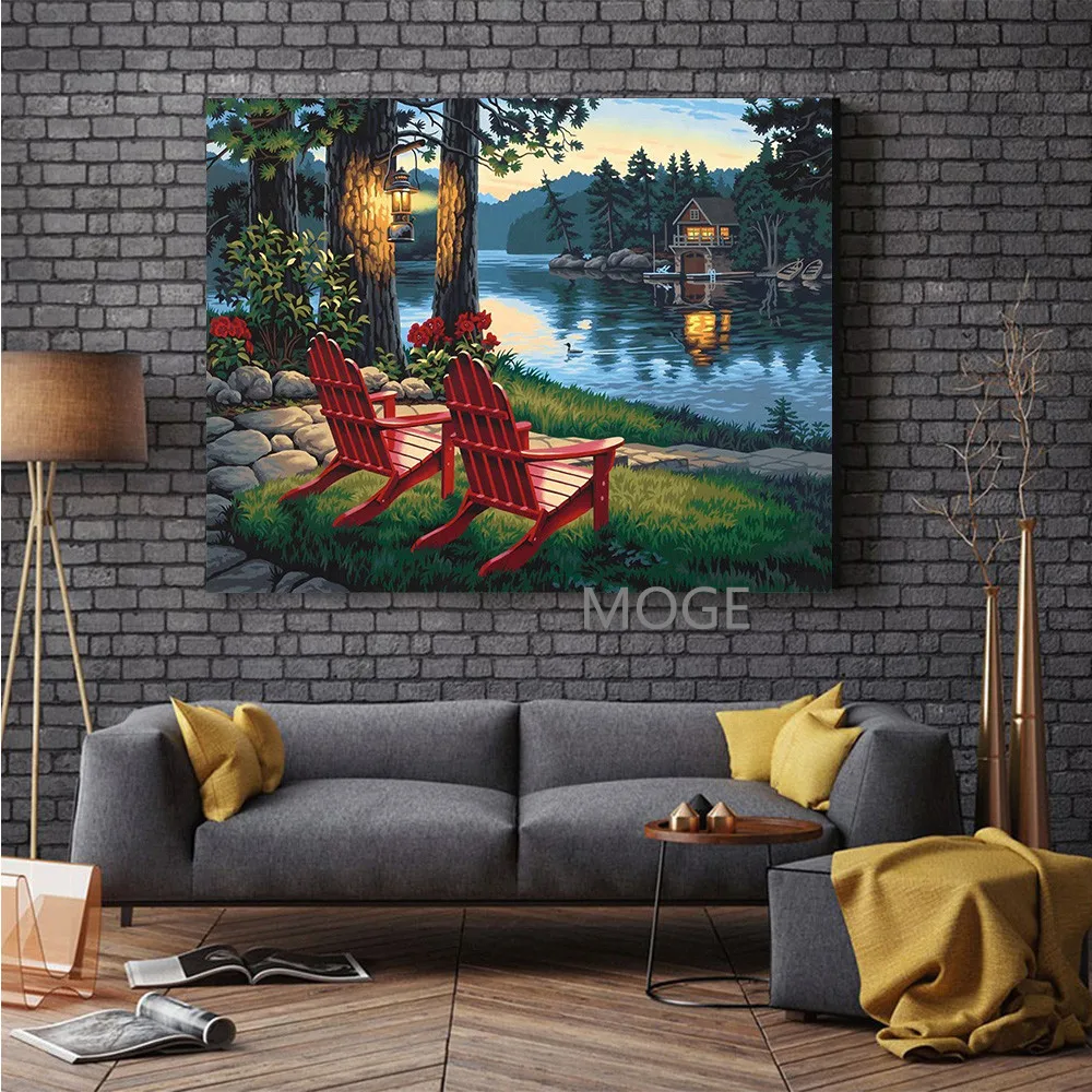 Светильник с изображением озера, холма, домика, стула, набор для алмазной живописи своими руками, вышивка крестиком стразы, мозаичное украшение