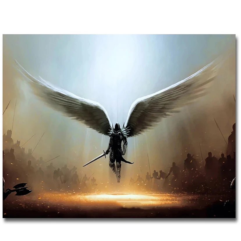 DIY Полная квадратная круглая алмазная живопись ангельские крылья картины воина Алмазная Бриллиантовая бижутерия Декор JX545