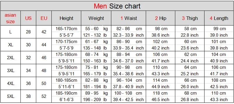 100% новый товар высокого качества. Номер товара: 10129 Материал: лайкра Цвет: армейский зеленый, темно-синий, черный, серый, светильник Содержание упаковки: Размер: штаны-1 шт. L: США: 28 ЕС: 42 рост: 165-170 см/5'5-5'7 Вес: 55-60 кг/121-132lb талия: 82-86 см/32,3-33,9 дюймаБедра: 98 см/38,6 дюйма бедра: 58 см/22,8 дюйма Длина: 99 см/39,0 дюйма XL: США: 30 ЕС: 44 рост: 170-175 см/5'7-5'9 Вес: 61-67 кг/135-148lb талия: 86-90 см/33,9-35,4 дюймаБедра: 102 см/40,2 дюйма бедра: 60 см/23,6 дюйма Длина: 101 см/39,8 дюйма 2XL: США: 32 ЕС: 46 рост: 175-180 см/5'9-5'11 Вес: 68-74 кг/150-163lb талия: 88-94 см/34,6-37,0 дюймаБедра: 106 см/41,7 дюйма бедра: 62 см/24,4 дюйма Длина: 104 см/40,9 дюйма 3XL: США: 34 ЕС: 48 рост: 175-180 см/5'9-5'11 Вес: 75-81 кг/165-179lb талия: 90-98 см/35,4-38,6 дюйма бедра: 110 см/43,3 дюйма бедра: 64 см/25,2 дюйма Длина: 106 см/41,7 дюйма 4XL: США: 36 ЕС: 50 Рост: 180-185 см/5'11-6'1 Вес: 82-88 кг/181-194lb Талия: 96-104 см/37,8-40,9 дюйма бедра: 114 см/44,9 дюйма бедра: 66 см/26,0 дюйма Длина: 108 см/42,5 дюйма 5XL: США: 38 ЕС: 52 рост: 185-190 см/6'1-6'3 Вес: 89-95 кг/196-209lb Талия: 100-108 см/39,4-42,5 дюйма бедра: 118 см/46,5 дюйма бедра: 68 см/26,8 дюйма длина: 110 см/43,3 дюйма Обратите внимание:1,1 см = 0,39 дюйма, 1 дюйм = 2,54 см2. Из-за различных настроек монитора и светильник эффект, фактический цвет элемента может быть s светильник ly отличается от цвета, представленного на снимках. Спасибо!3. Возможны отклонения в 1-3 см вследствие измерений вручную.4. Азиатский размер меньше, чем размер ЕС/США/Великобритании, пожалуйста, проверьте подробную информацию о размере перед покупкой. Спасибо.