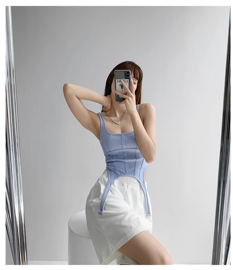 Женский жилет в стиле сафари TVVOVVIN, Асимметричный топ с квадратным вырезом, без рукавов, VO4X