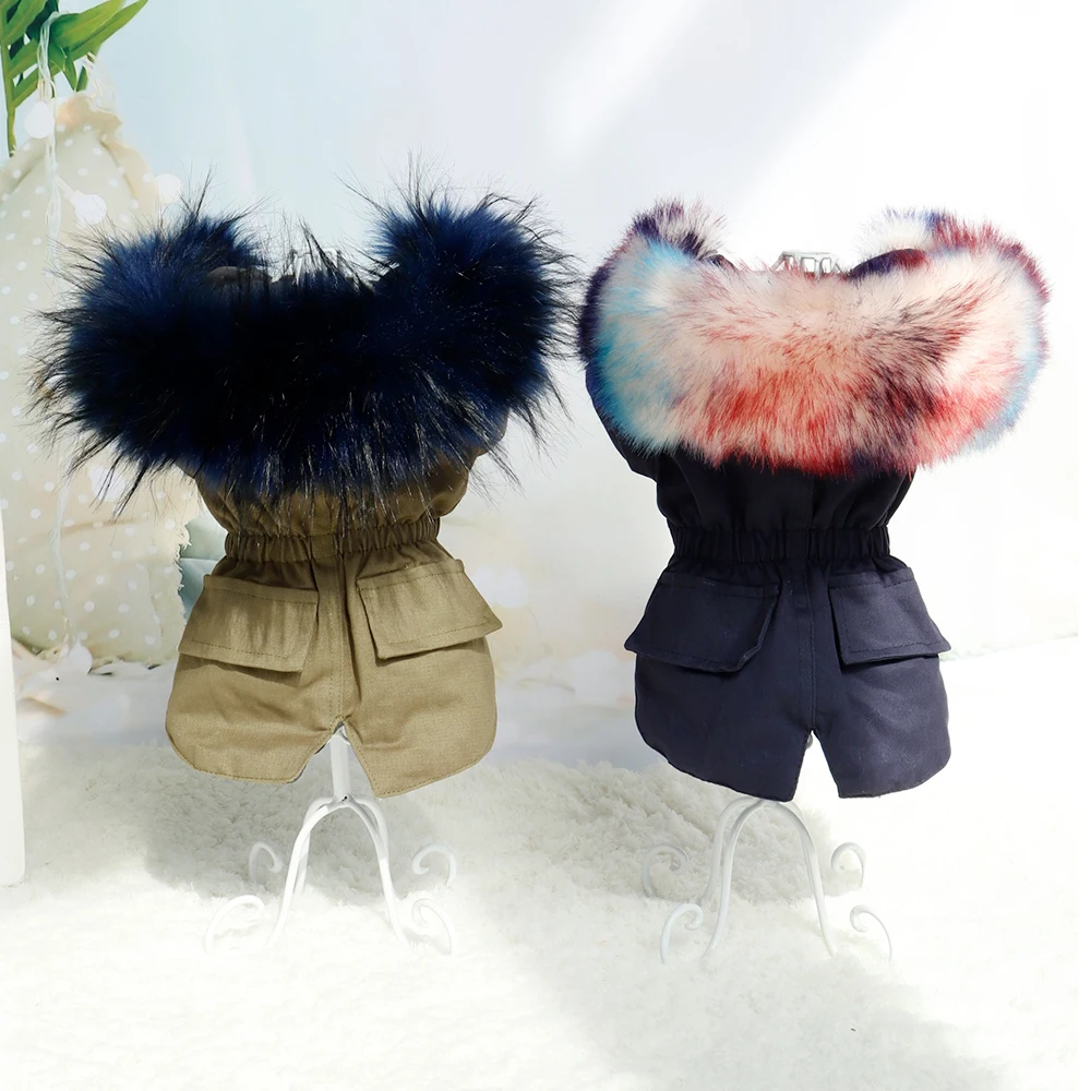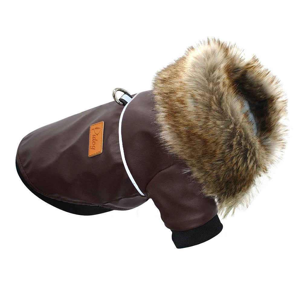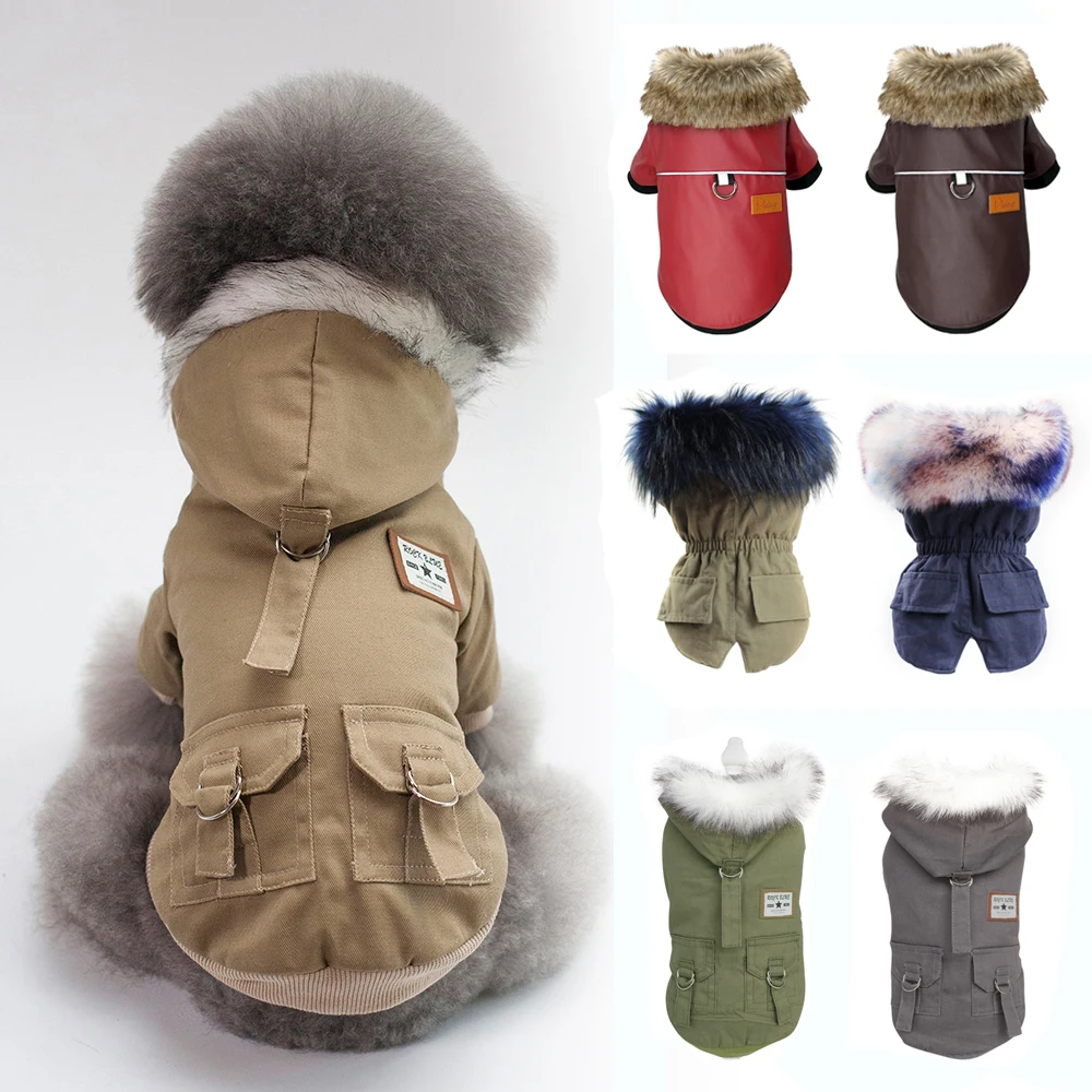 Зимняя одежда для собак с капюшоном и меховой шапкой, плотное пальто для собак, куртка, одежда для домашних животных, наряд с флисовой подкладкой для маленьких средних собак