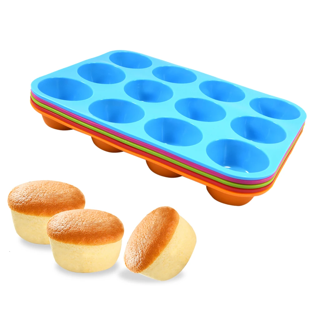 Силиконовая Круглая мини-форма для маффинов, 12 отверстий, женская форма для печенья, помадки, выпечки, сковорода с антипригарным покрытием, форма для пудинга и торта, инструмент для выпечки
