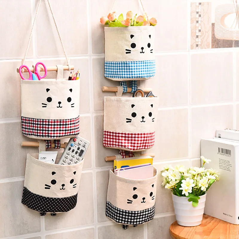 Настенные сумки для хранения, органайзер с мультяшным котом, карман...