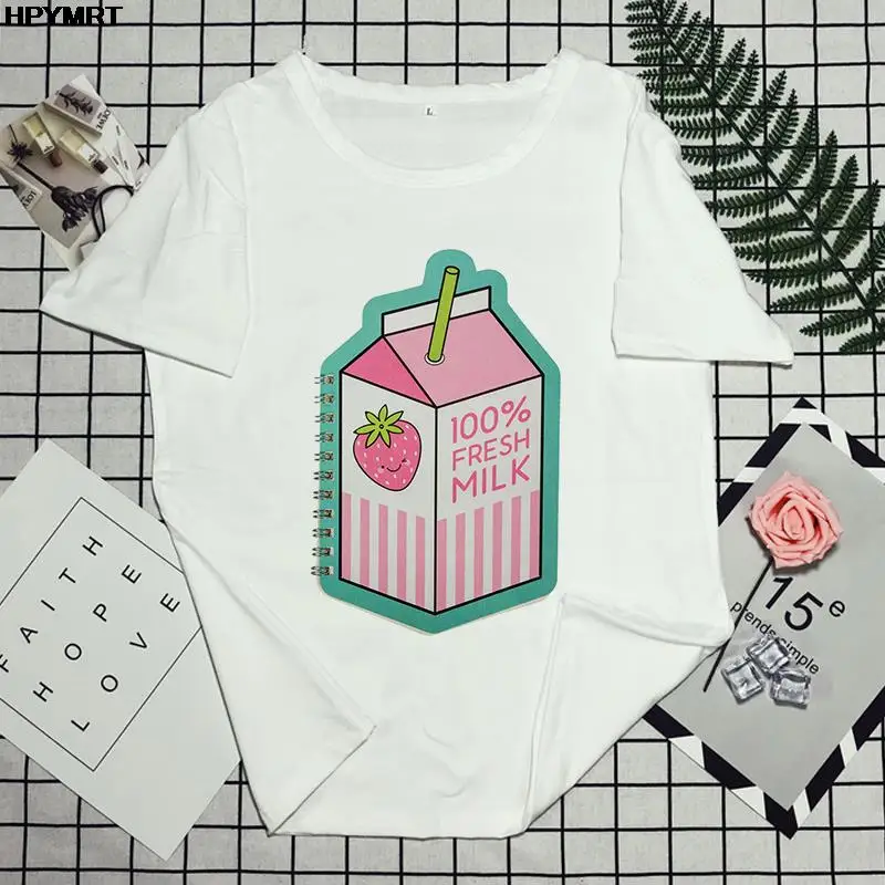 Новая летняя белая футболка для женщин, Harajuku Kawaii, футболка д...