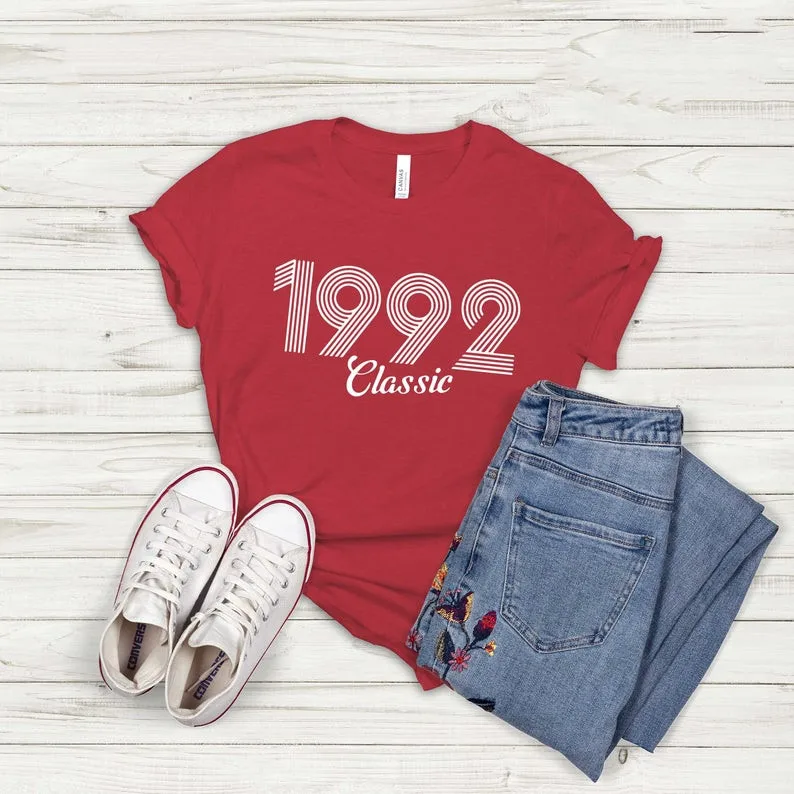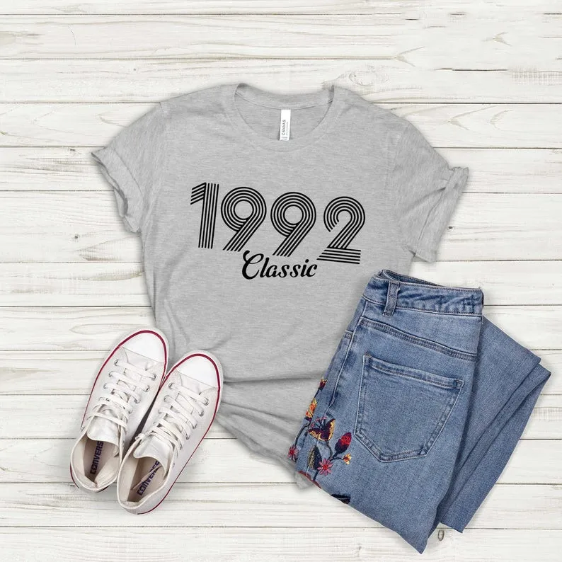 Винтажный подарок для мужчин и женщин на 30-й день рождения 1992, Женская одежда из 100% хлопка, модная футболка с круглым вырезом и коротким рукавом y2k goth