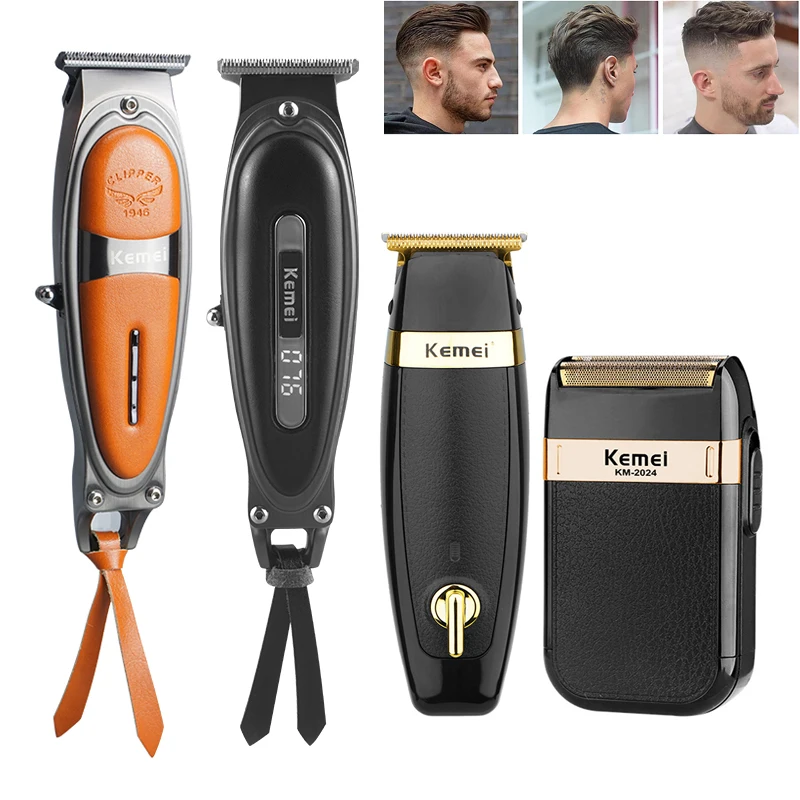 Машинка для стрижки волос Kemei, металлическая, кожаная, с зарядкой от USB