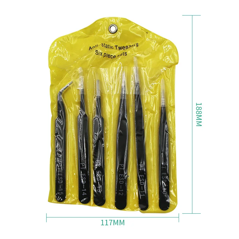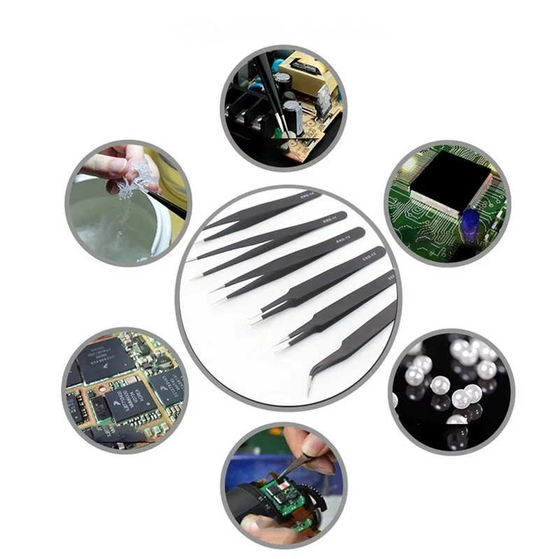 6X безопасный антистатический Пинцет Инструменты для технического обслуживания ESD