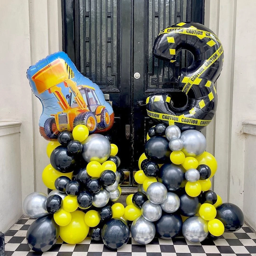 Воздушные шары на тему тематической вечеринки, строительный трактор, 0-9 черных цифровых шаров, башня для грузовиков, автомобилей, украшение для дня рождения мальчиков, 1 комплект
