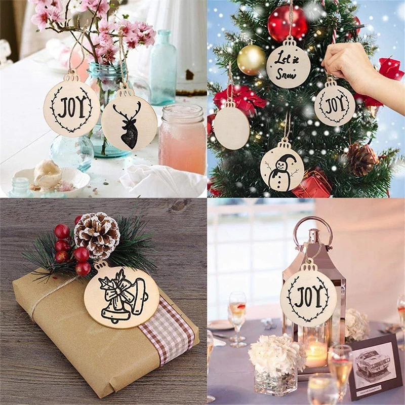 10 шт. пустые рождественские деревянные елочные бирки, деревянные ломтики, сделай сам, художественное ремесло, орнамент для рождественской елки, подвеска, новогодние украшения 2021