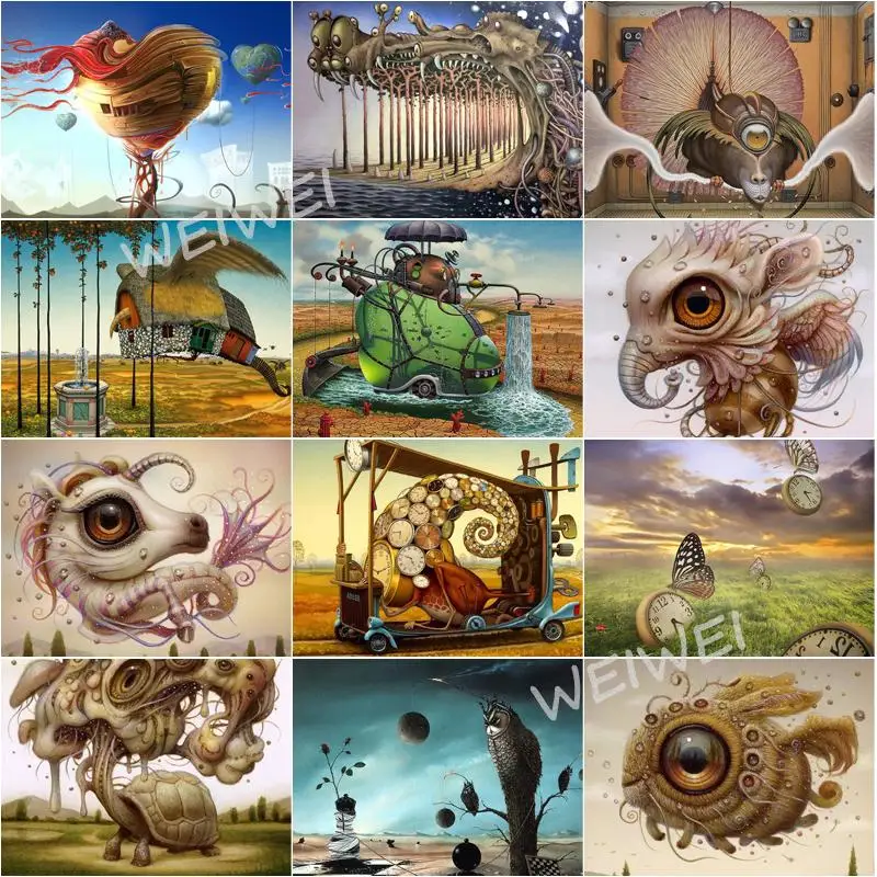 Набор для алмазной вышивки 5D сделай сам, мультяшная мозаика с абстрактными изображениями рыб, лошадей, деревьев, совы, наборы для вышивки крестиком