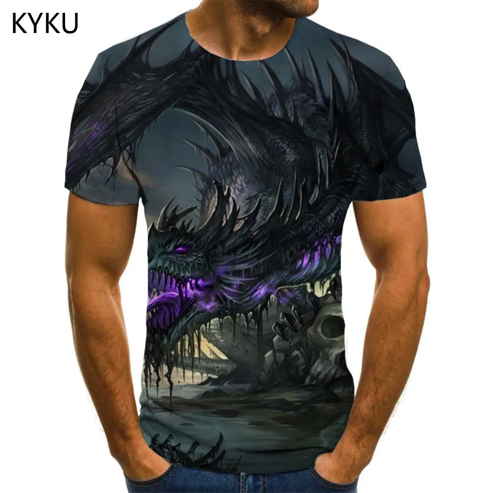 KYKU животных Футболка мужская футболка с изображением дракона печа...