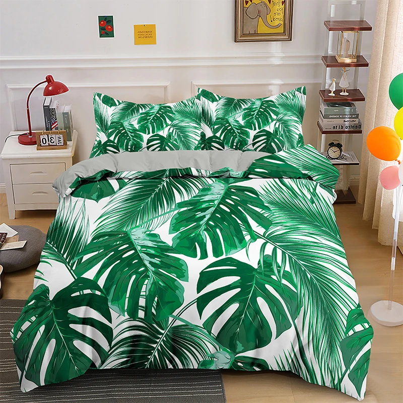 Комплект постельного белья для взрослых и детей, с принтом тропических ботанических листьев