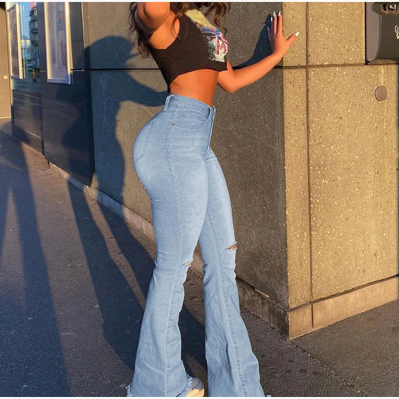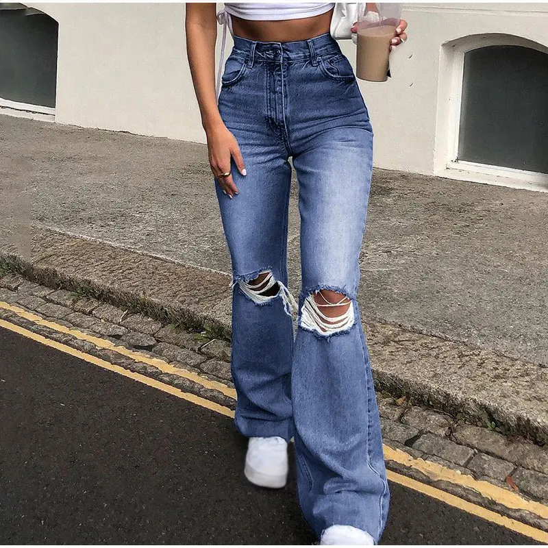 Wholesale dropshipping drop shipWomen Street Ripped Flare Jeans