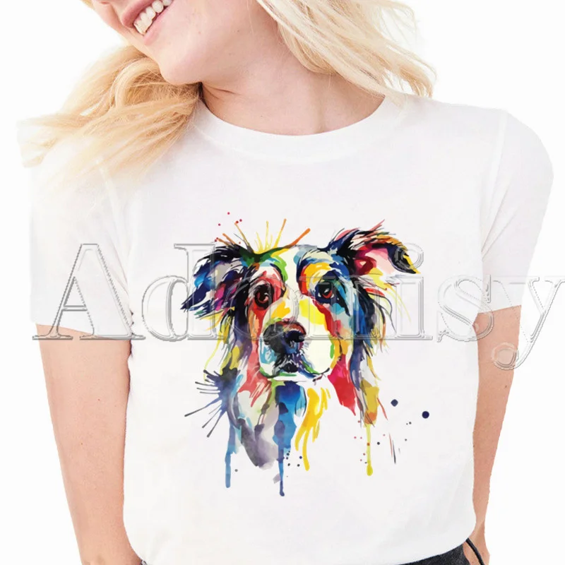Футболка женская летняя с принтом границы колли, смешная графическая рубашка с круглым вырезом, Свободный Топ в стиле Харадзюку