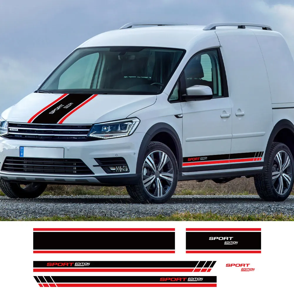 4 шт. наклейка на боковую дверь автомобиля s & Hood наклейка на двигатель и задние виниловые наклейки для Volkswagen VW Caddy & Maxi Camper Van Stripes Graphics