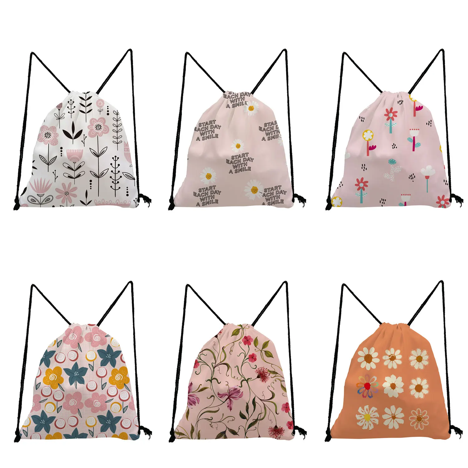 Рюкзак на шнурке с цветочным принтом, портативный детский школьный ранец, красивая повседневная спортивная сумка для спортзала, Женская дорожная сумка для плавания и хранения растений