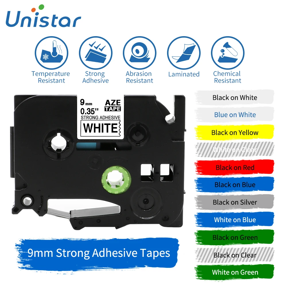 Ярлык Unistar, ярлык, лента 9 мм, яркий клей, совместимый с Brother, ярлык для черного и белого цветов, ярлык