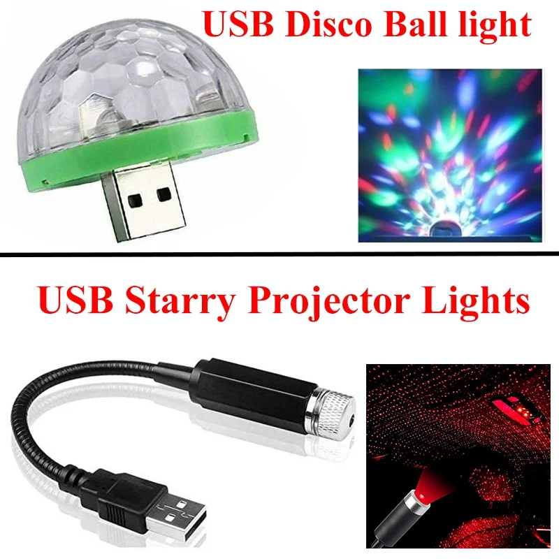 Автомобильный USB-прожектор для атмосферы DJ RGB, цветной мини-прож...